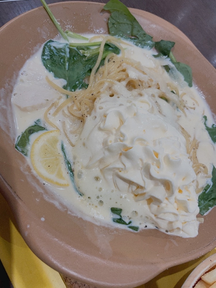 夕食にレモンのクリームパスタも食べた!!
