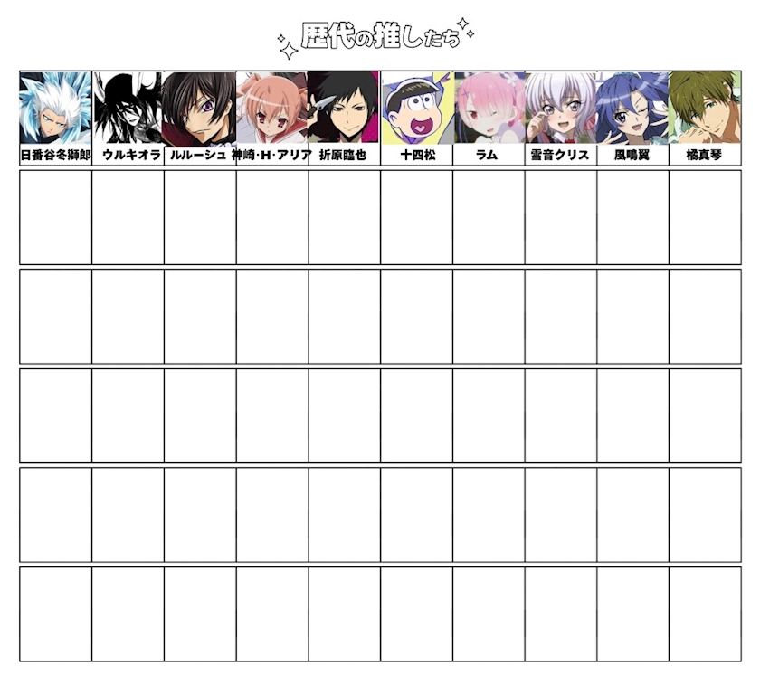 歴代の推し60キャラ