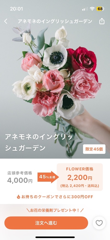 「もうこれは買うしかない‼️」と思い、お気に入りの ピンクのガーベラのブーケ💐 をカートに入れた瞬間…