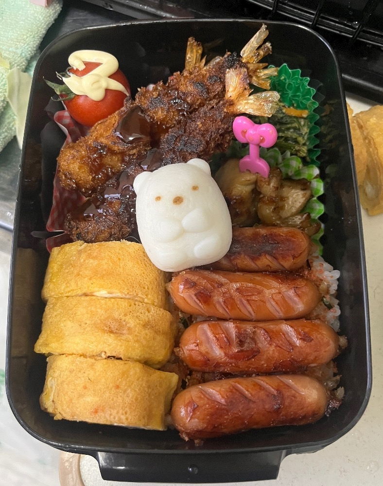 昨日のお弁当朝からエビフライ揚げてました