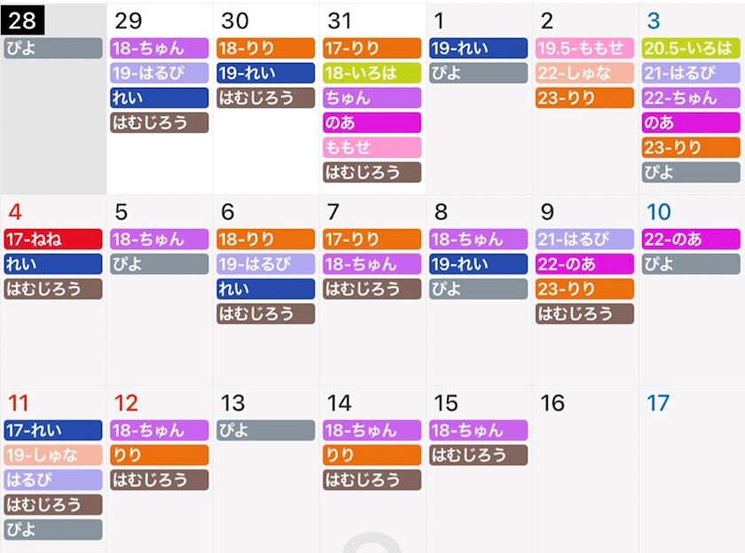 ぴよの出勤は下記になります