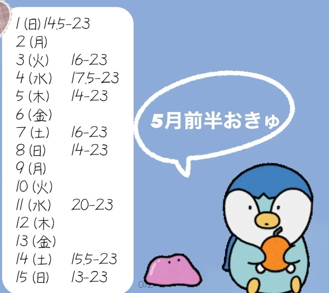 下のおきゅ予定みてみてくれ👍