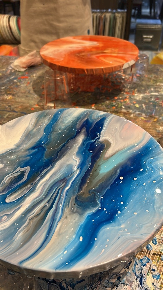 絵の具をキャンバスの上に垂らして