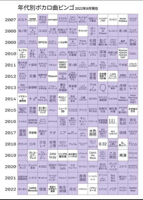 年代別ボカロビンゴ