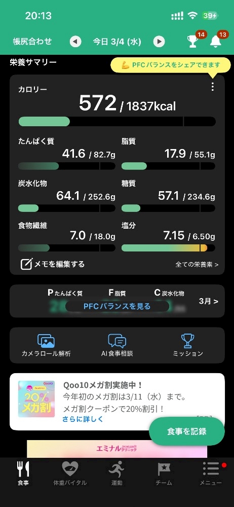 今日は塩分取りすぎちゃった