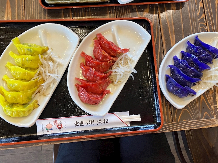 左からにんにくラーメン肉抜き餃子、辛甘餃子、みそ汁餃子です