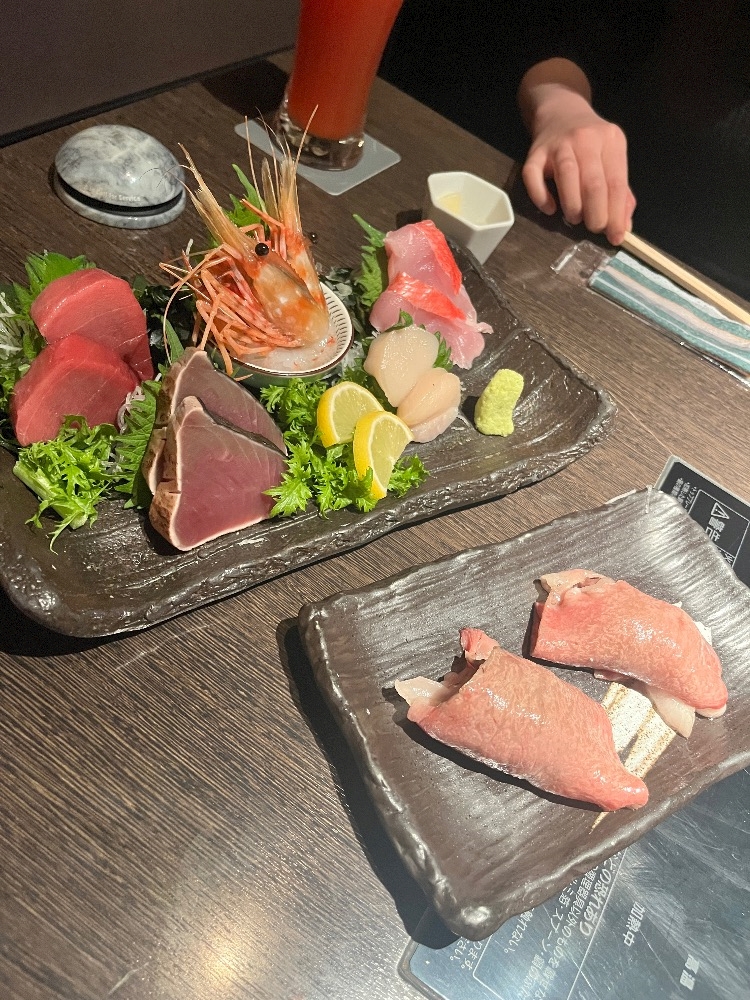 お刺身とお寿司と肉寿司ご馳走してもらったよ✨