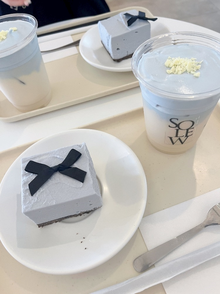 ケーキもドリンクも水色でかわいい☁️🩵
