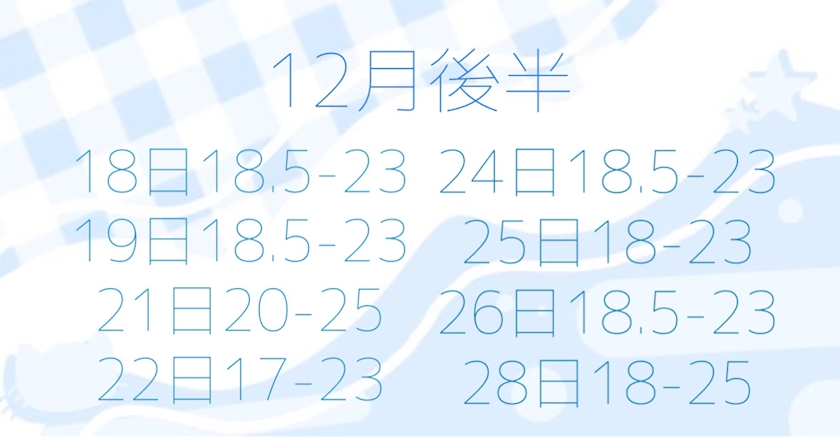 月~金▷17:00~25:00 土・日・祝▷16:00~25:00 |