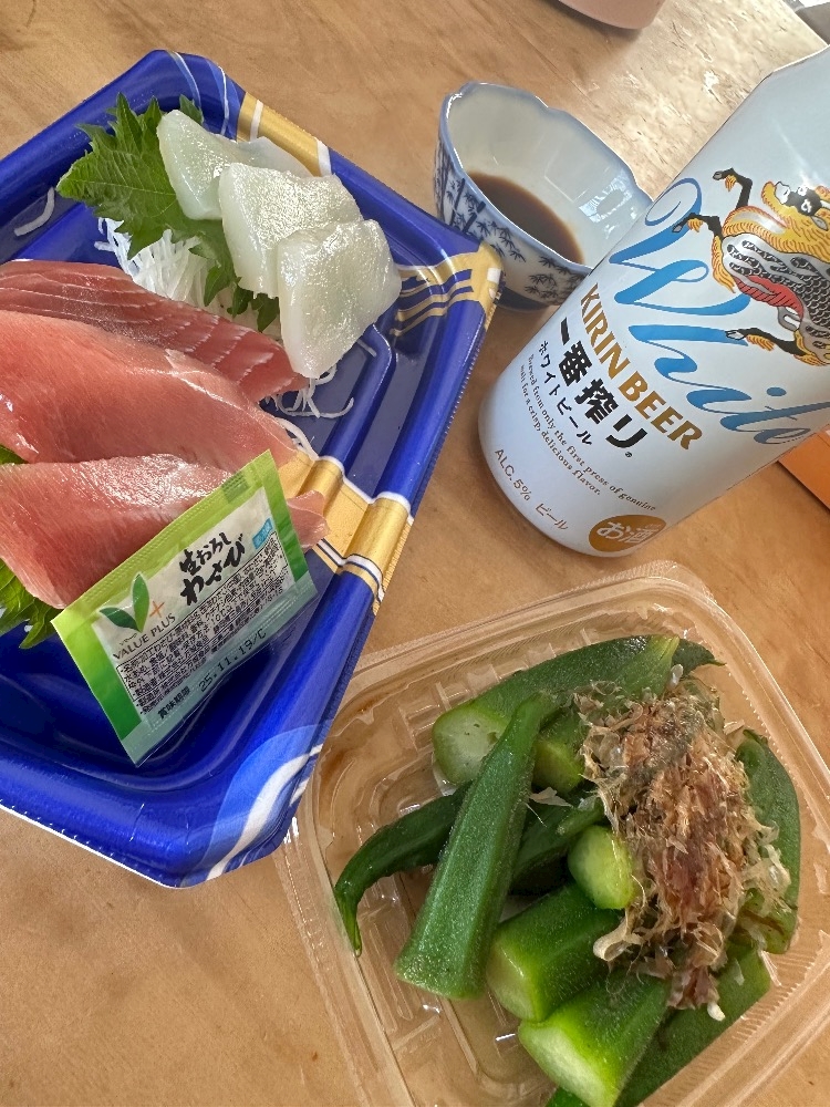 お刺身とオクラも食べたんだ〜