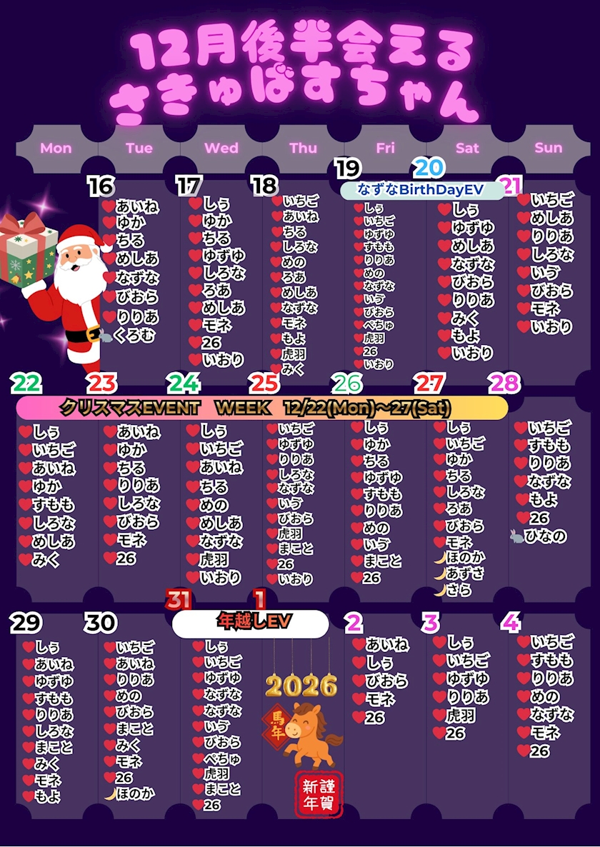 ☪️12月後半会えるサキュバスちゃん☪️
