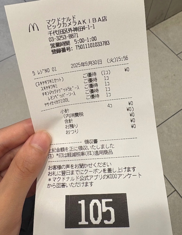 載せる画像が何も思いつかないのでただマックしたときのレシートでも載せますマックの株おすすめでち🍔