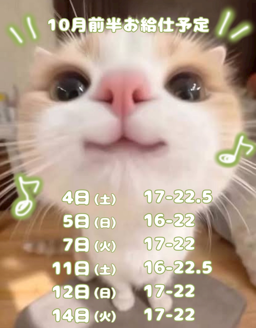10月前半のお給仕予定です💖