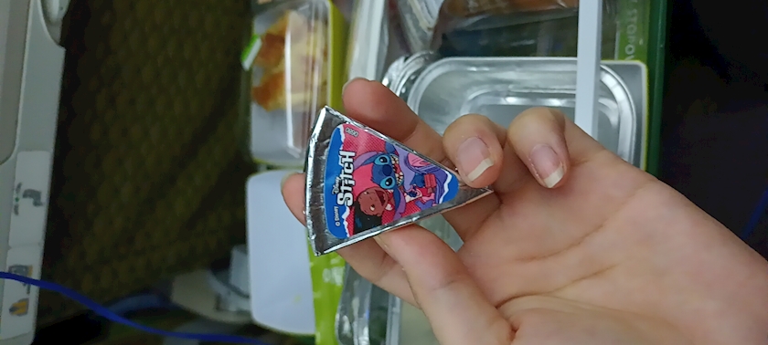 機内食のチーズ、リロ&スティッチだった