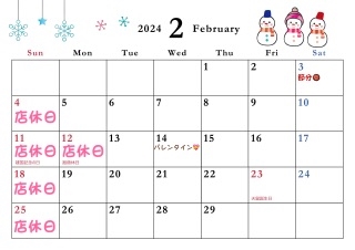 🍫2月の営業日🍫