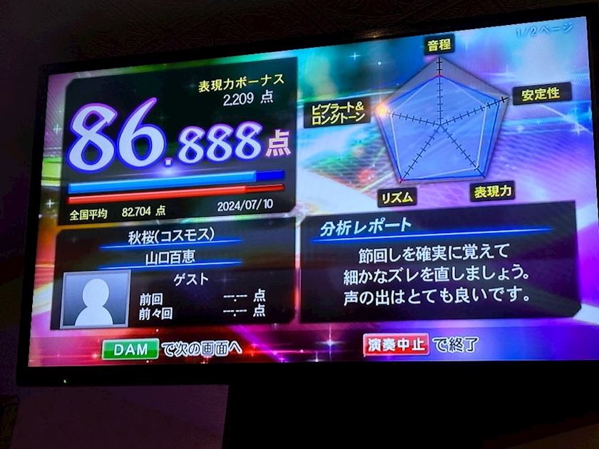 写真撮るのしくじっちゃって本当申し訳ないんだけど、これは私がRマンのお席で叩き出した77点🙂💥