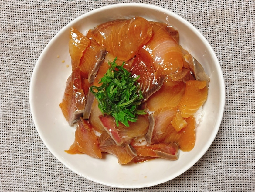 写真は今日家でたべてきた、「ぶりの漬け丼」である🙂