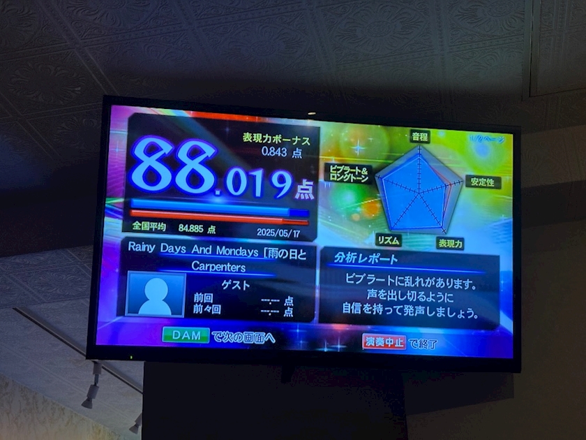 Yさんは上手すぎて90点こえちゃうことが多いから難しかったと思うけど、無事に88点でて嬉しかったー❤️
