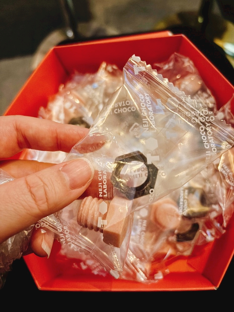 ネジの形になってるチョコで、本当にくるくるハマるの🙂💥💥💥