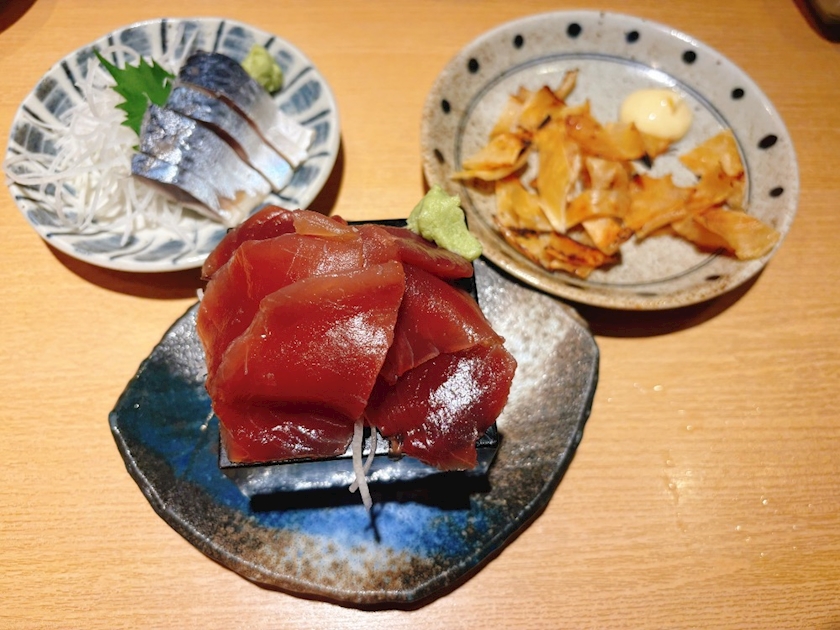 まぐろ赤身のお刺身、シメサバ、えいひれ🙂!!!