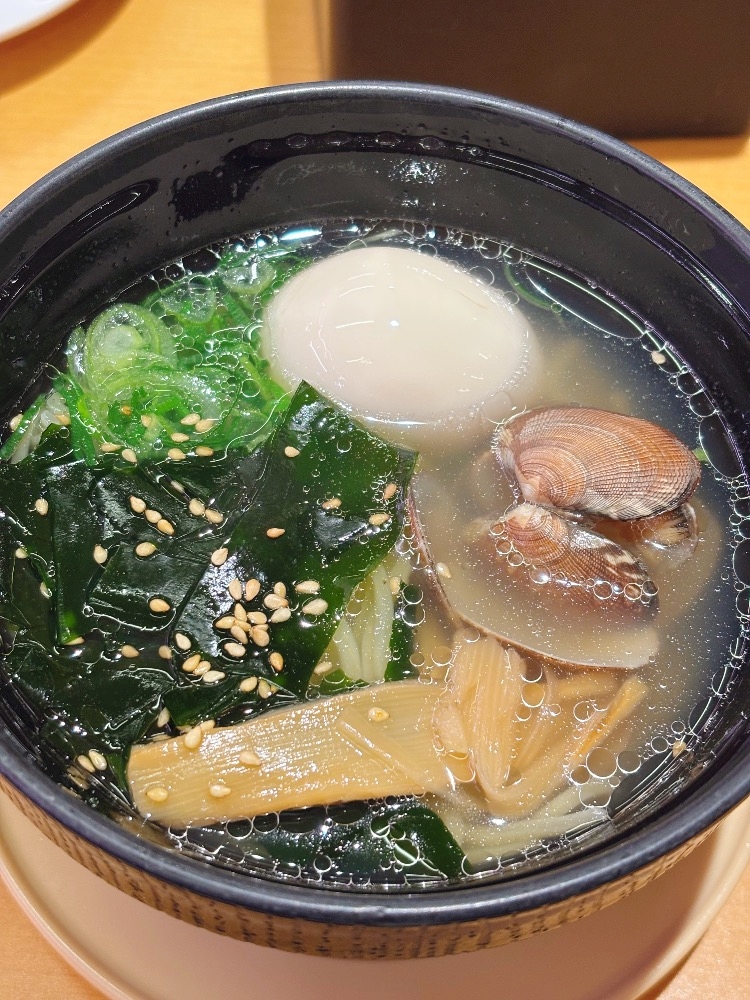 これは前日に一緒に行った子が食べてたラーメンをひとくちもらったらおいしかったから頼んでみた、貝のほうのらーめん(名前わすれちゃった💦)🍜