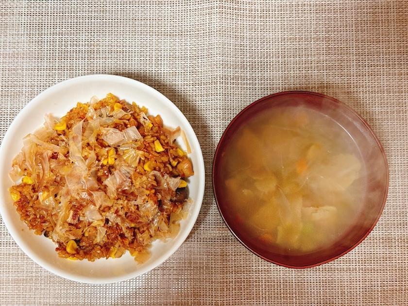 (隣のスープは残ってたミックスベジタブル入れた🥕)