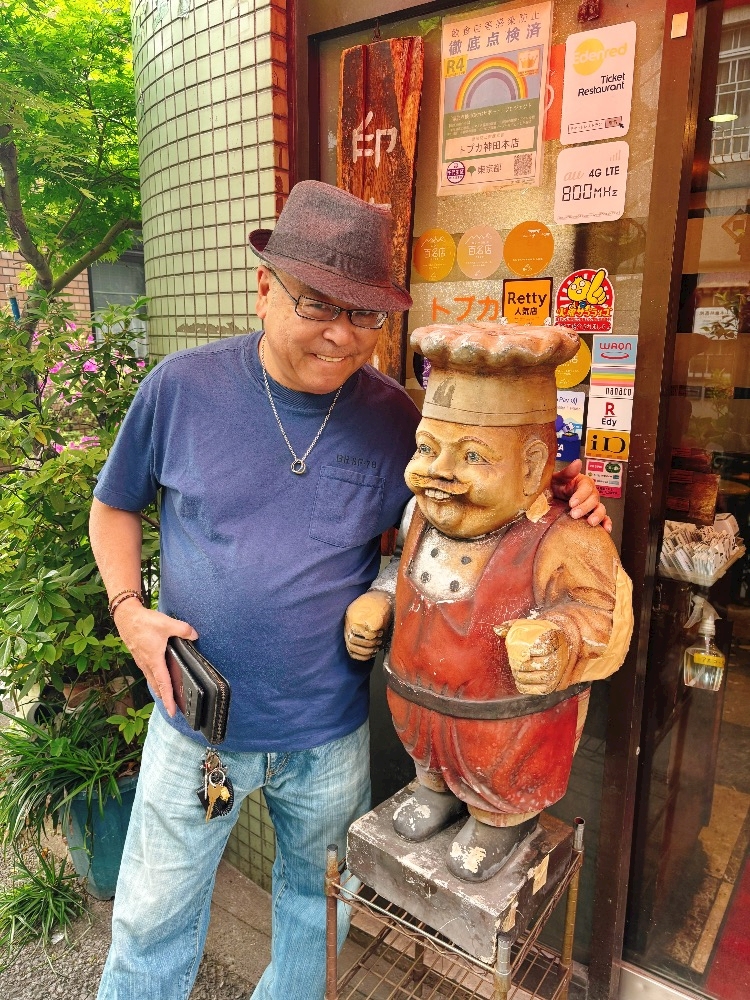 おいしすぎてテンションあがったので、入り口のおじさんと隊長で写真撮ってみました🌸