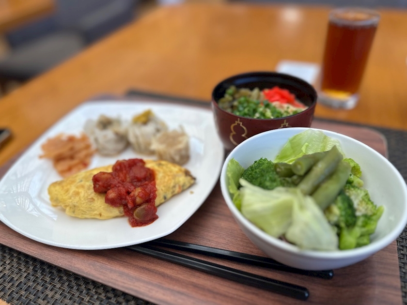 オムレツは野菜 ハム チーズ全部入り🧀