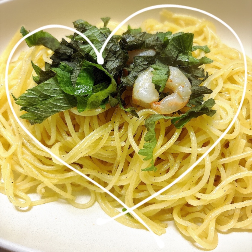 エビと大葉のペペロンチーノ🍝
