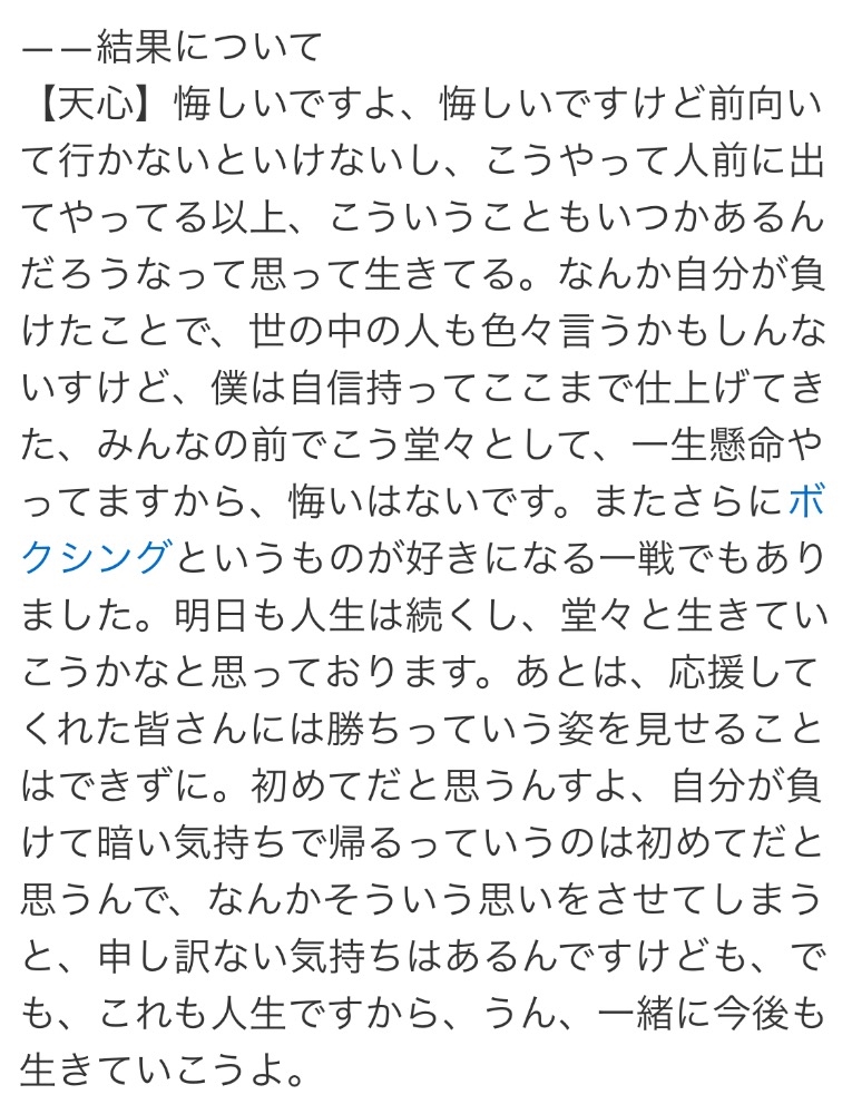 那須川天心の試合後のインタビューが