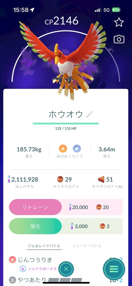 目標にしてた色違いシャドウホウオウは