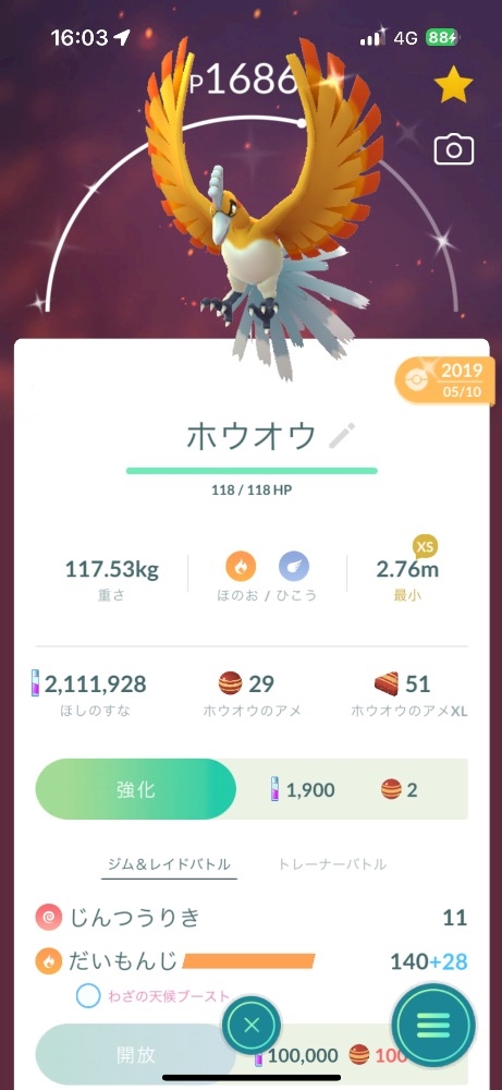 約6年前に捕まえた色違いホウオウ