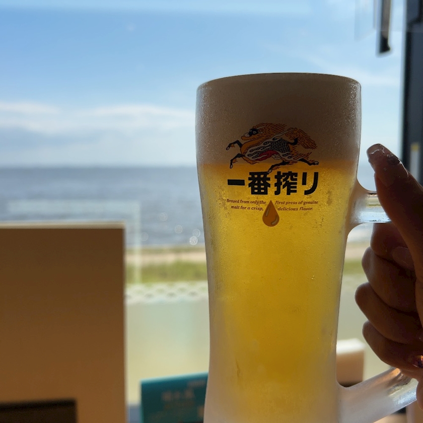 海を見ながらビールを飲みました