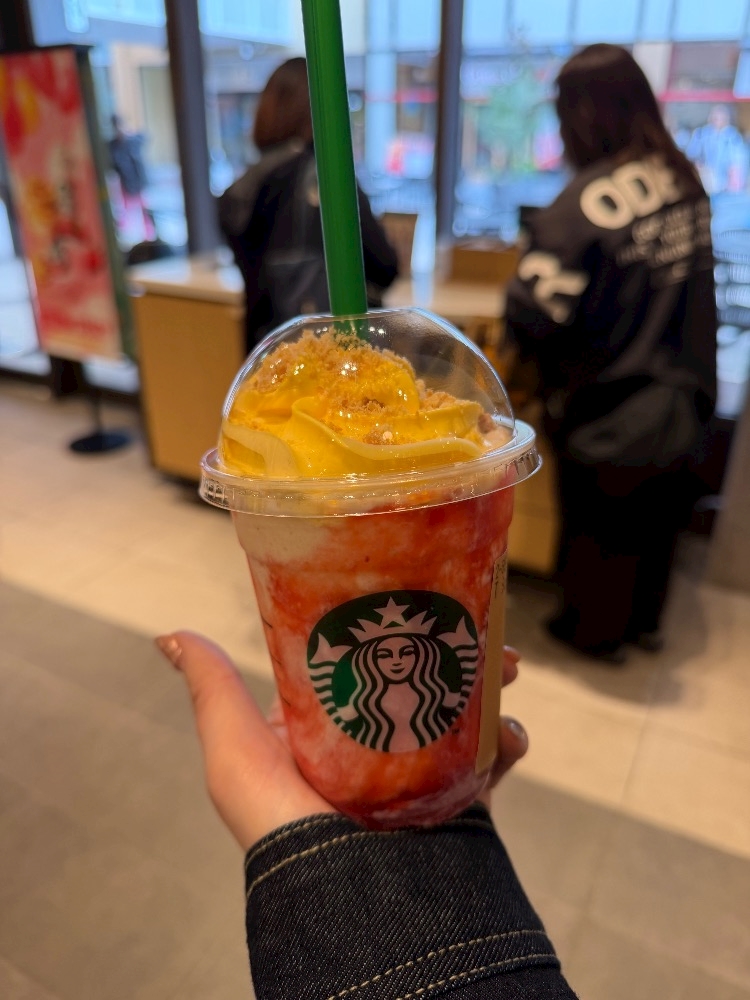 先日スタバの新作「ストロベリーシュークリームフラペチーノ」を飲んできました!