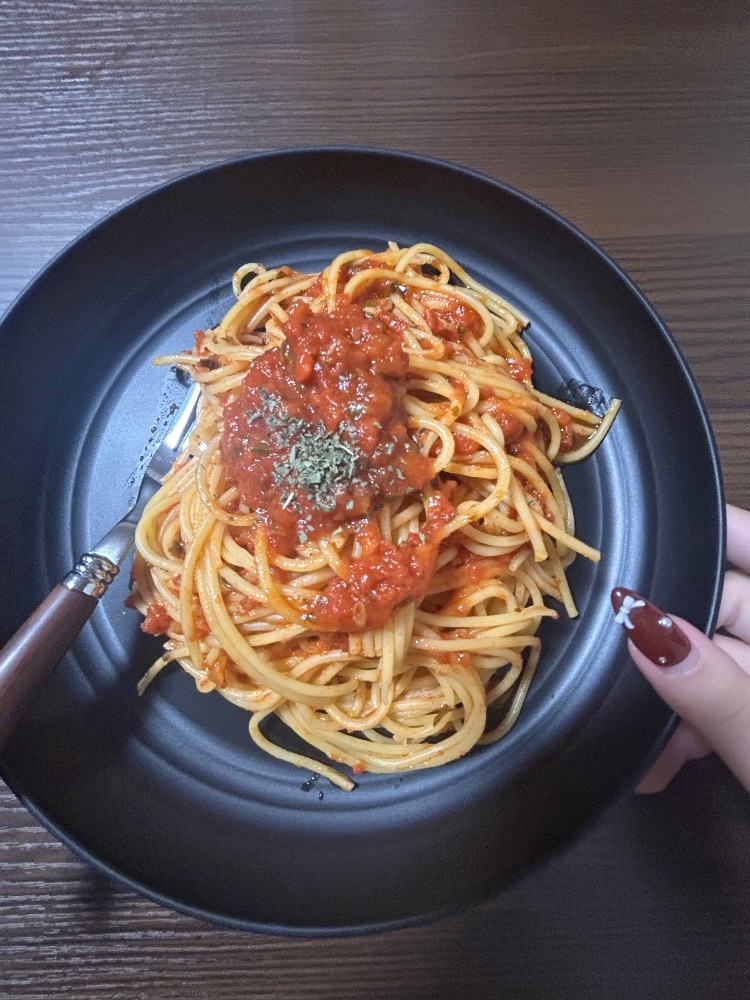 トマトバジルのパスタを作ってもらったよ🍝🍅