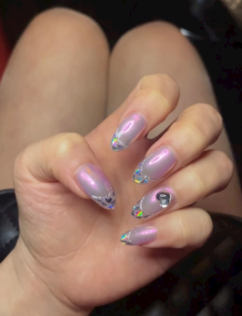 ⬆️ピンクのガラスフレンチのキラキラネイルに!✨️